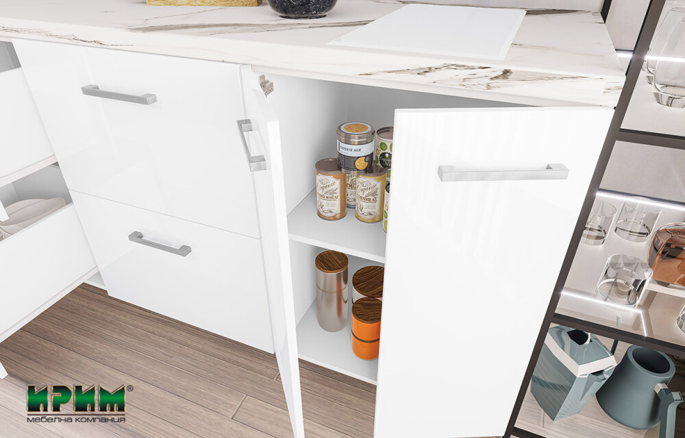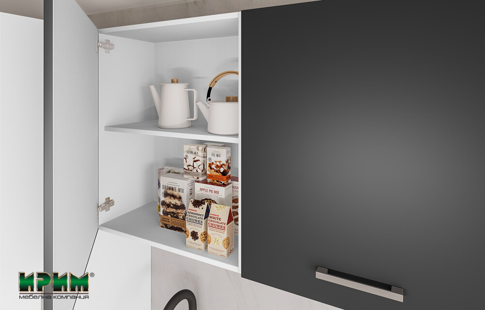 Стилната кухня в Сити 9120 впечатлява с минималистичен модерен дизайн и висококачествена изработка от МДФ. Модулите предлагат оптимална функционалност, включително възможност за вграждане на хладилник, фурна, микровълнова и мивка. Плавното затваряне на вратите и удобните чекмеджета осигуряват комфорт и дълготрайност в ежедневната употреба. Горните шкафове в Карбон мат придават елегантен акцент, а термоплотът в бял мрамор завършва цялостната визия.