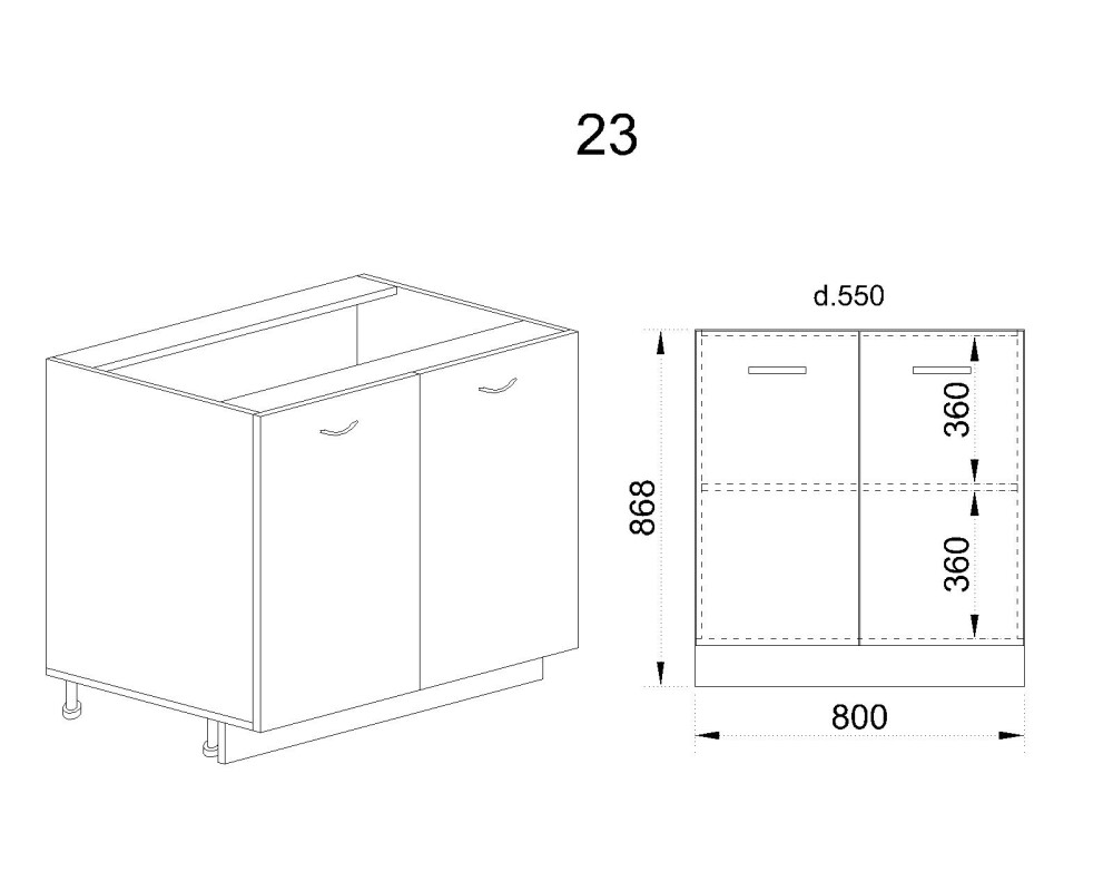 Долен модул за вграждане на мивка с две врати и рафт АРФ-Дъб…