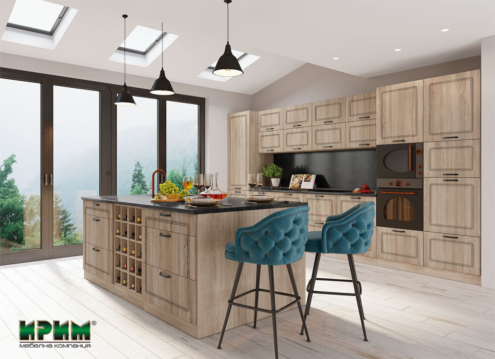 Кухнята Сити 967 впечатлява с модерен дизайн, естествена дървесна визия и функционално разпределение на модулите, осигуряващо удобство в ежедневието. Големият брой долни шкафове, колонен модул за хладилник и специални модули за фурна и микровълнова позволяват пълноценна вградена конфигурация. Островът добавя допълнително работно пространство и практични чекмеджета, бутилиери и модули за мивка. Изработена от висококачествен МДФ със система за плавно затваряне, кухнята гарантира комфорт, дълготрайност и стил във всяко модерно жилище.