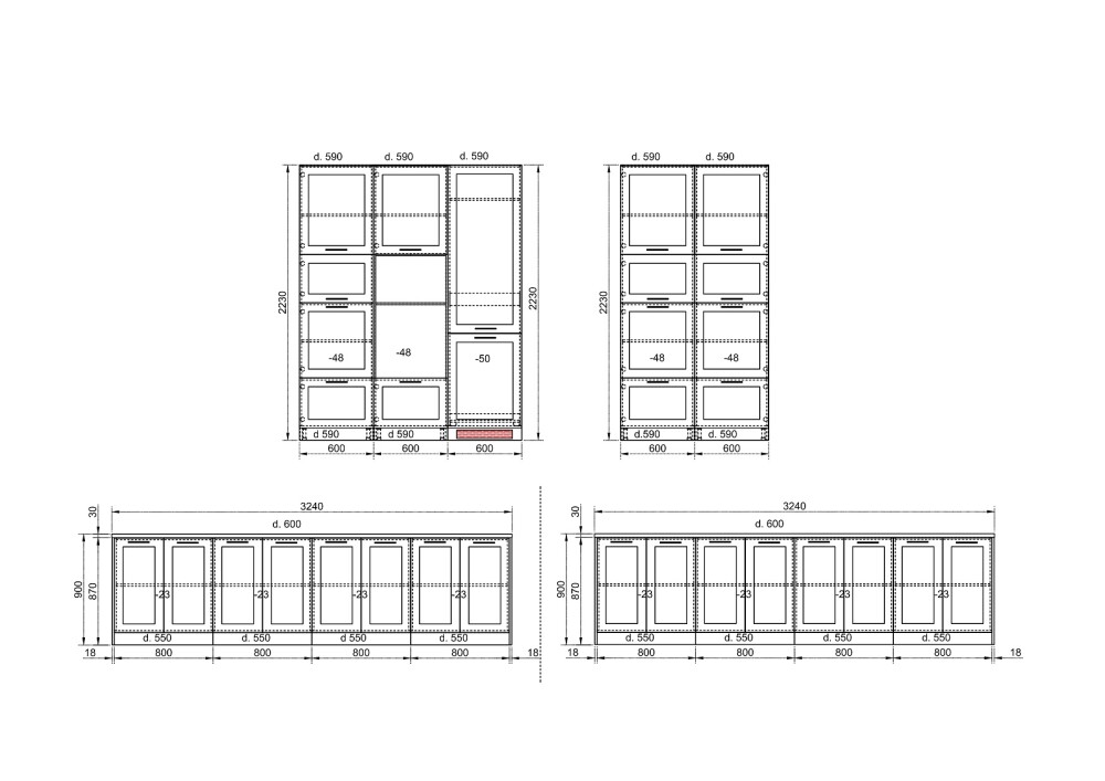 - Два долни модула с четири врати и възможност за вграждане на фурна и мирковълнова с височина 38см .АРФ-Сонома-04-48 - 60/59/223см.
