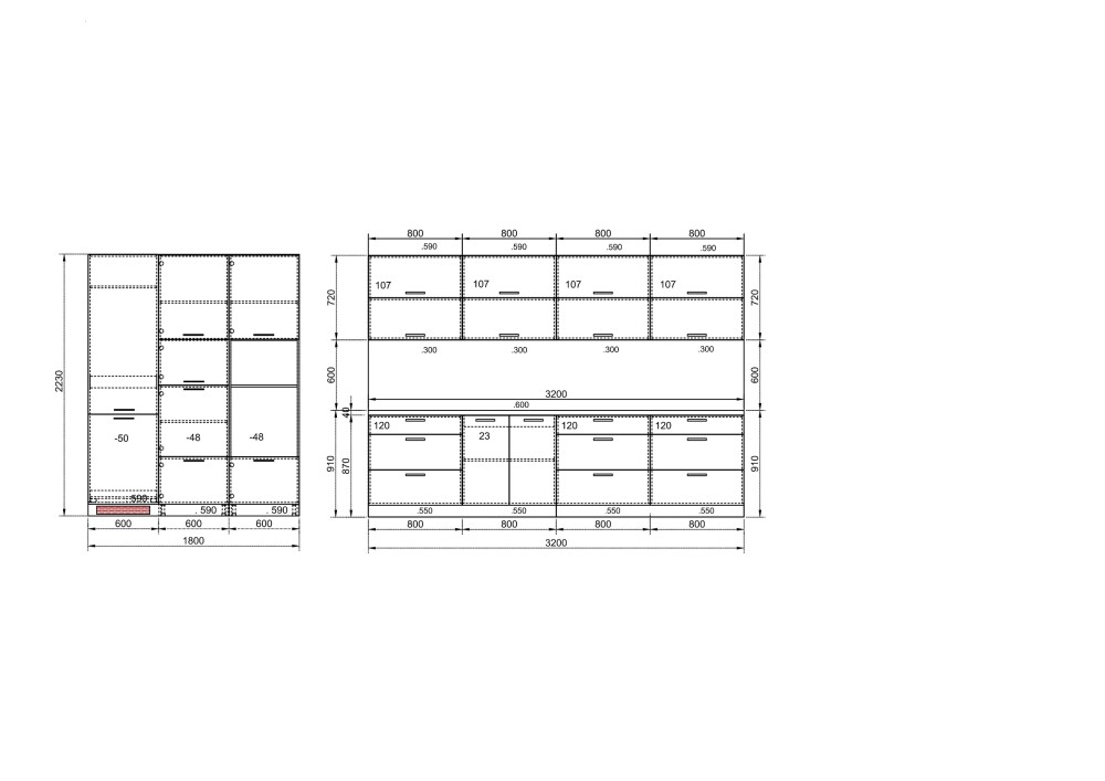 (дълбочина на шкафовете под плот – 55 см)