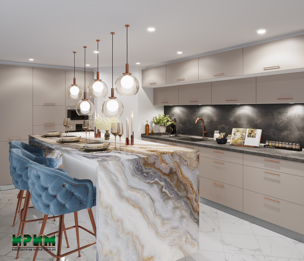 Кухня Сити 9077 съчетава елегантен стил и функционалност с модерна визия в цвят Капучино мат и корпус Бяло гладко. Изработена от висококачествен МДФ, тя предлага плавно затваряне на врати и чекмеджета, както и възможност за вграждане на мивка и уреди. Модулният ѝ дизайн позволява оптимално разпределение и комфорт при ежедневна употреба. Сити 9077 е перфектен избор за съвременен дом с вкус към детайла.
