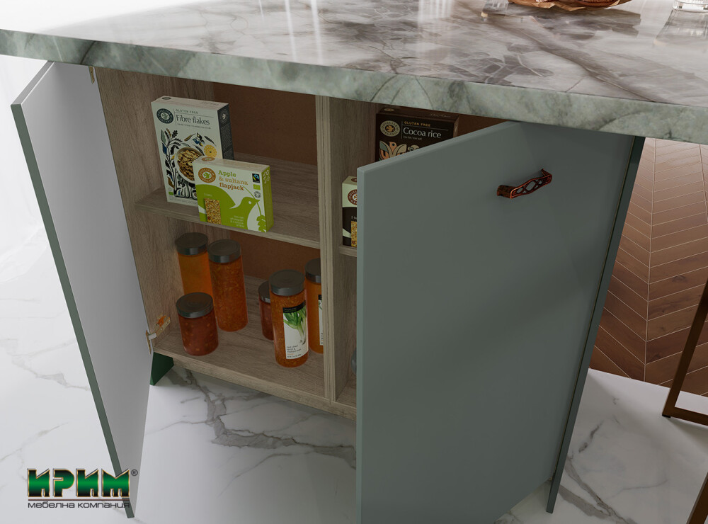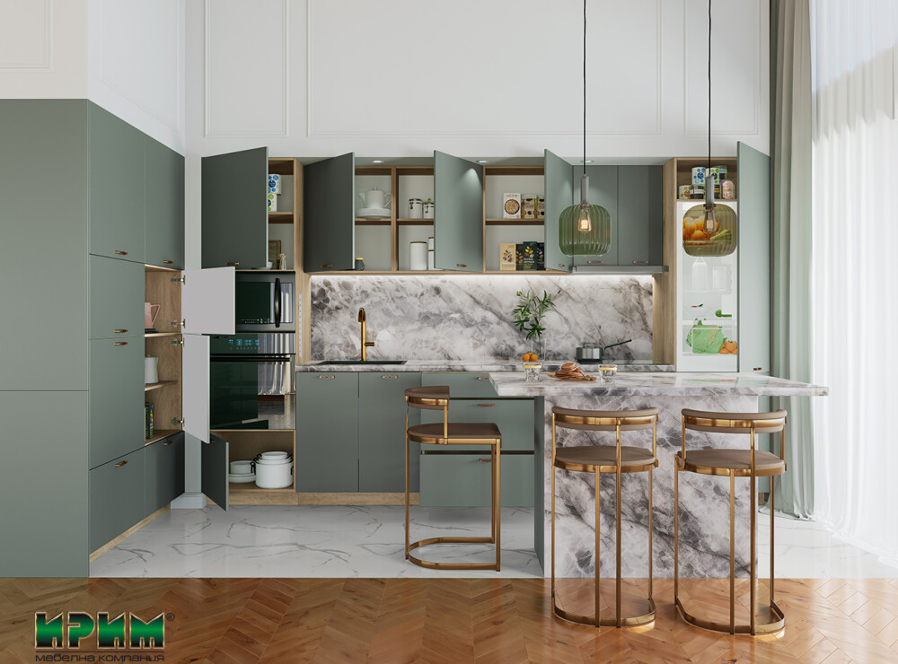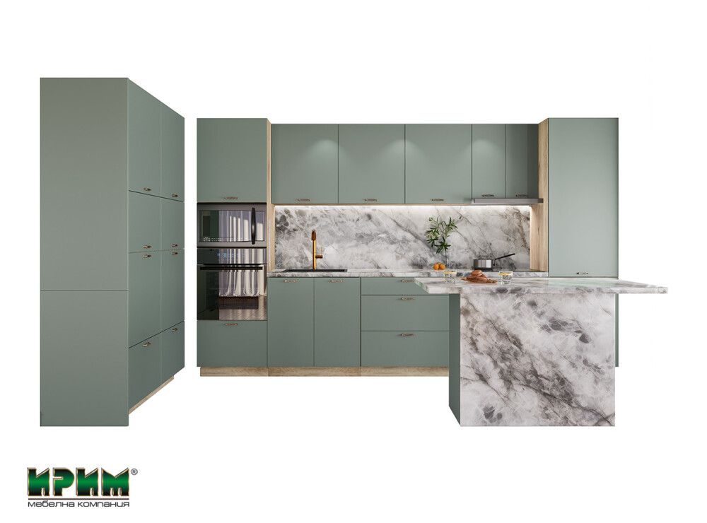 Кухнята Сити 9126 впечатлява с модерен дизайн и стилна матова повърхност в актуалния оливен цвят, създаваща уютна и елегантна атмосфера. Функционалните модули позволяват пълно вграждане на уреди, удобно разпределение и максимално използване на пространството. Островът допринася за повече работна площ и практичност, а системата за плавно затваряне гарантира комфорт и дълготрайност. Изработена от висококачествен МДФ, кухнята комбинира стил, устойчивост и висока функционалност за съвременния дом.