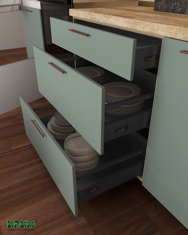 - Долен модул с три чекмеджета и система InnoTech Atira с плавно затварян АРФ-Олив мат-11-55 - 80/55/87см.