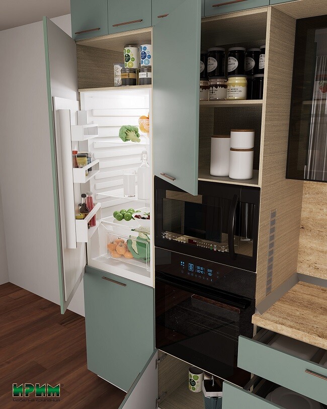 - Колонен модул с две врати с възможнст за вграждане на хладилник с височина 178см АРФ-Олив мат-11-50 - 60/59/223см