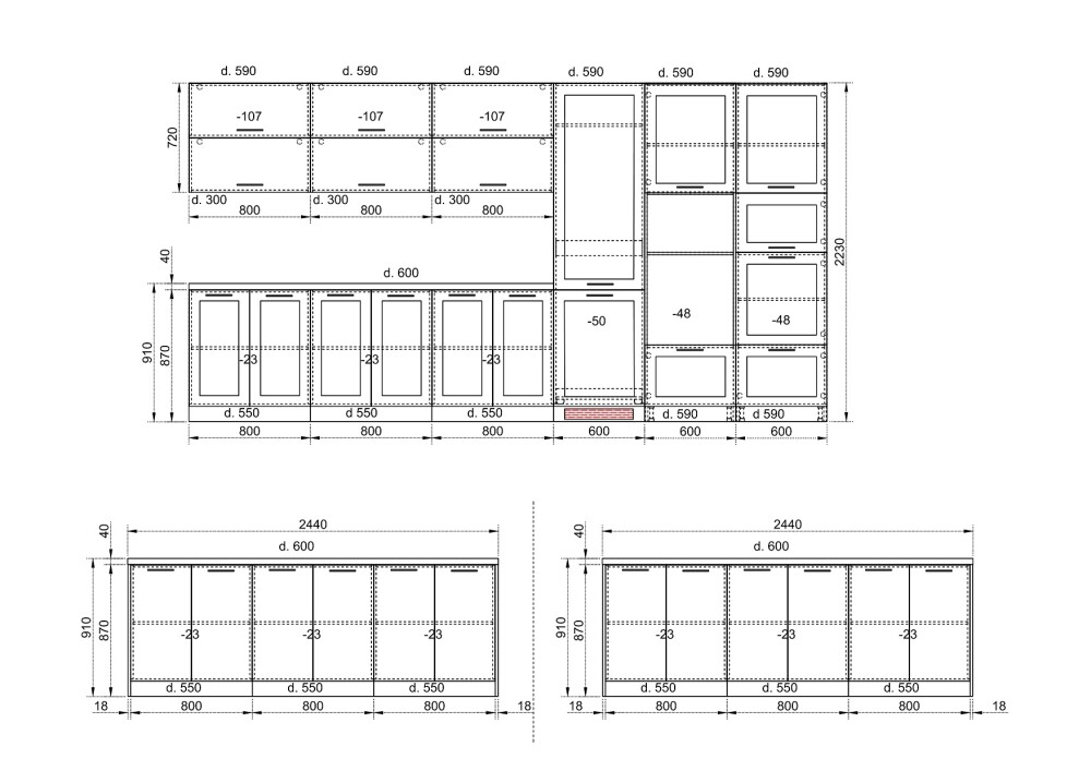- Три долни модула с две врати и връзможност за вграждане на мивка АРФ-Сонома-02-23 - 80/55/87см.