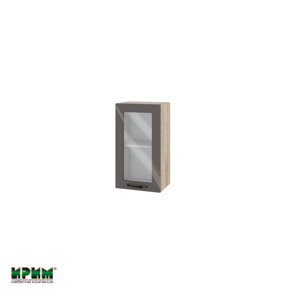 Горен модул с витринна врата и рафт АРФ-Антрацит гланц-05-202