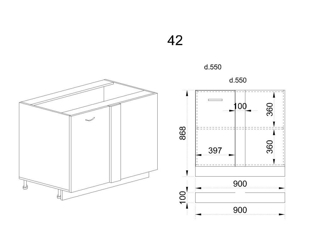 90/55/87 см (габаритен размер от ъгъл 100см)