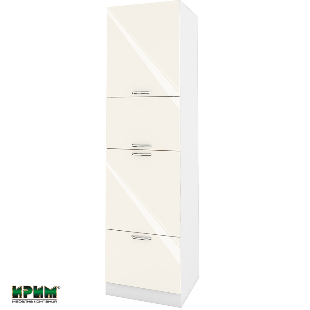 Кухненските модули БФ – Крийм гланц съчетават елегантен блясък и изчистен модерен стил, подходящ за светли и стилни интериори. Лицето от МДФ 18 мм в цвят Крийм гланц придава луксозна визия и усещане за простор, а корпусът от Бяло гладко ПДЧ 16 мм осигурява стабилност и дълготрайна употреба. Повърхностите са лесни за поддръжка и устойчиви на ежедневно натоварване. Перфектен избор за модерни, минималистични и луксозни кухни.