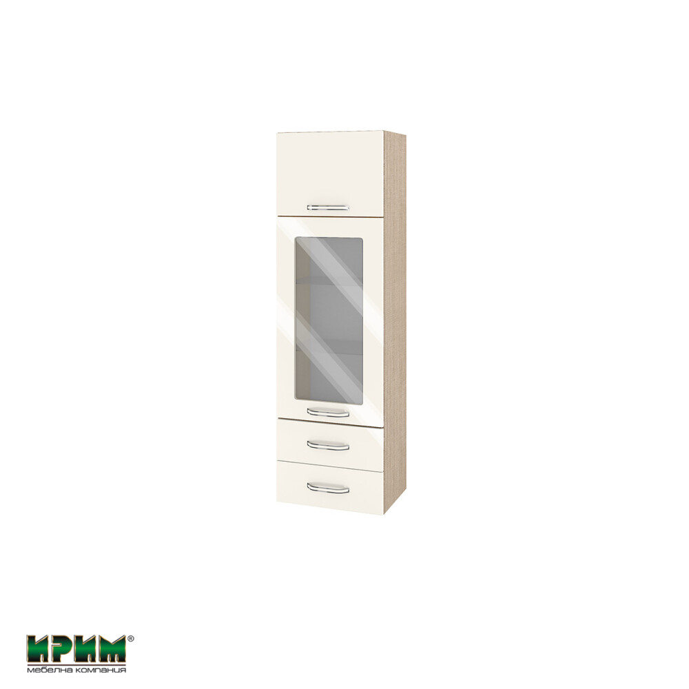 Горен модул с врата,витрина и две чекмеджета МФ-Крийм гланц-11-201