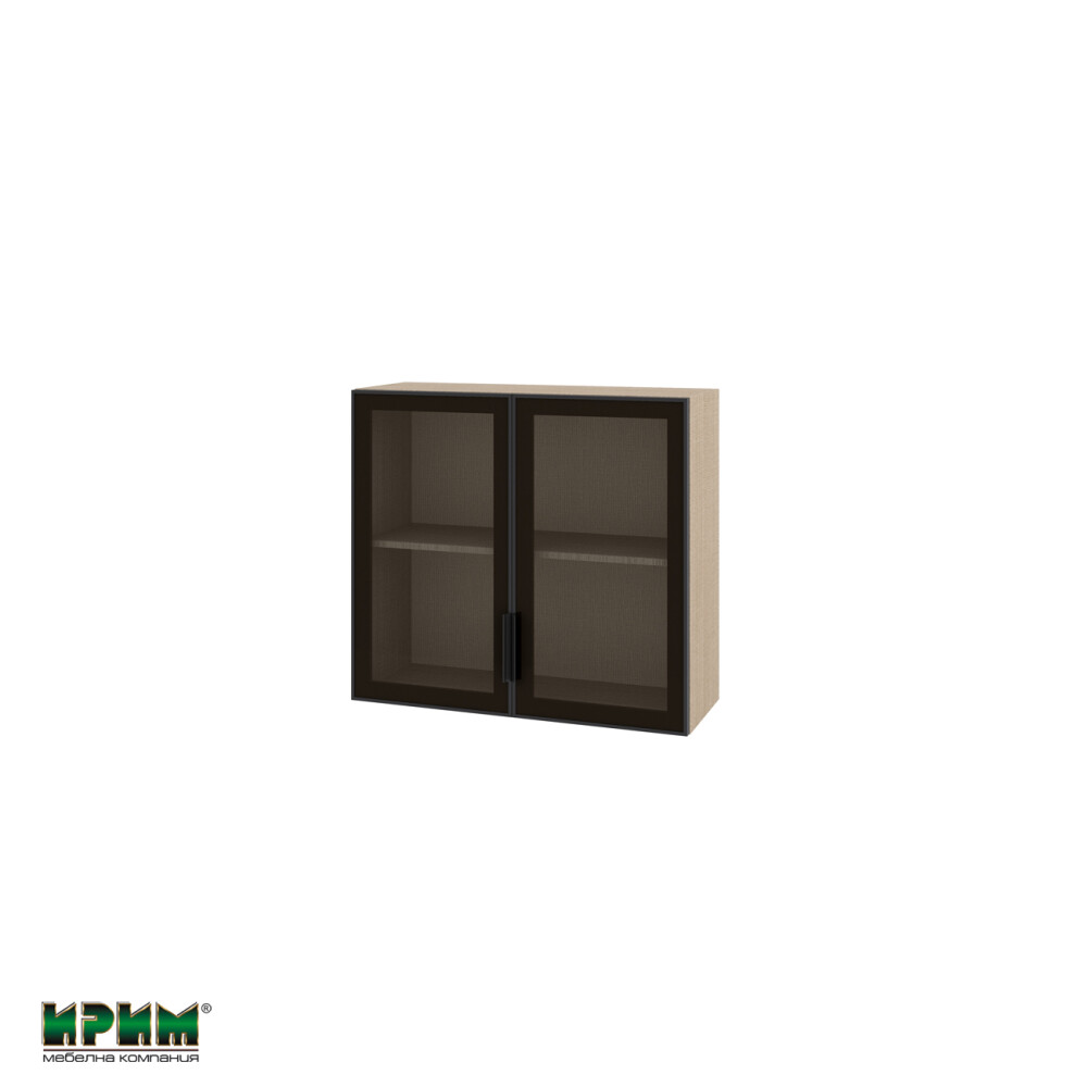 Горен модул с две стъклени врати и рафт Алу глас и рафт…