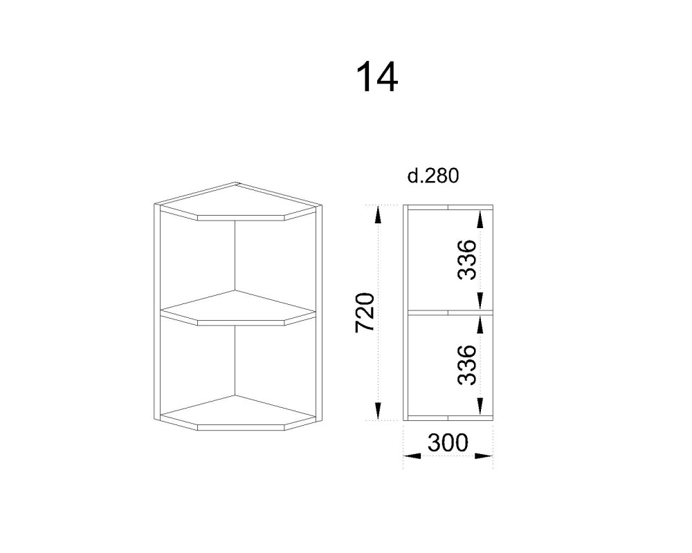Горен модул ъглова етажерка с рафт М - 14