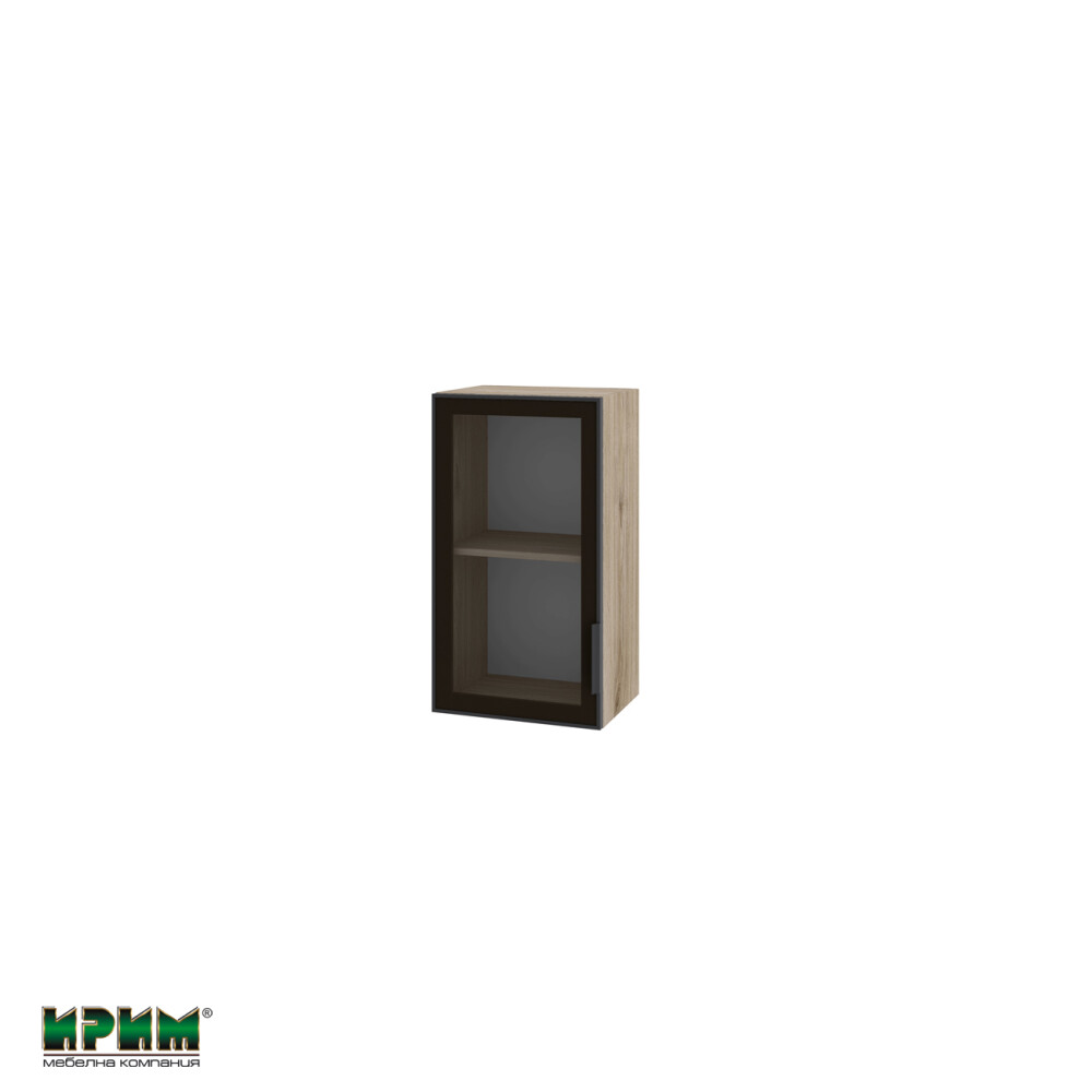 Горен модул със стъклена врата Алу глас и рафт АРАЛ - 171…