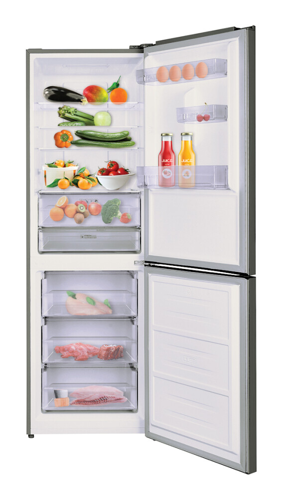 Хладилна част: 3 прозрачни стъклени рафта, 1 прозрачно чекмедже, 1 чекмедже Fresh Zone с регулиране (crisper/chiller), 3 прозрачни рафта на вратата