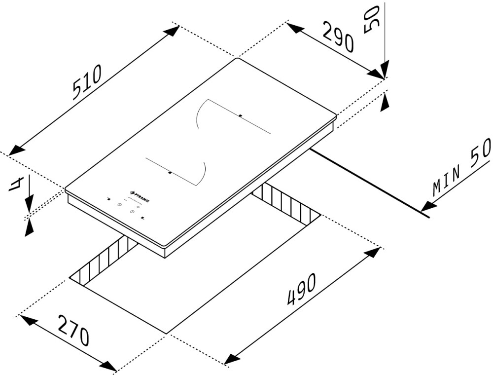 Размери (Ш × Д × В): 290 × 510 × 50 mm
