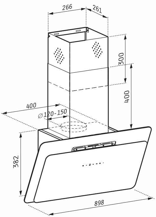 Свободно стоящ aбсорбатор Черен 90см VETRIO premium