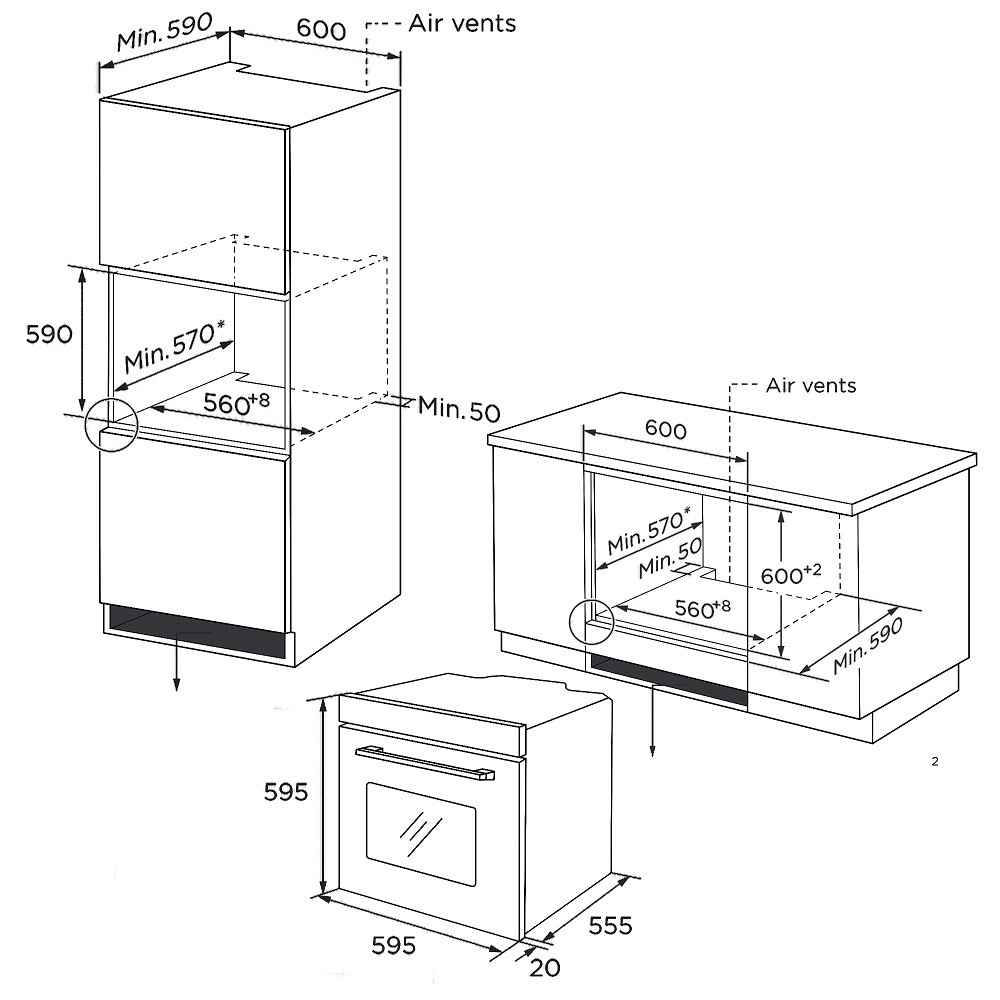 • Размери (Ш × В × Д): 595 × 595 × 550 mm