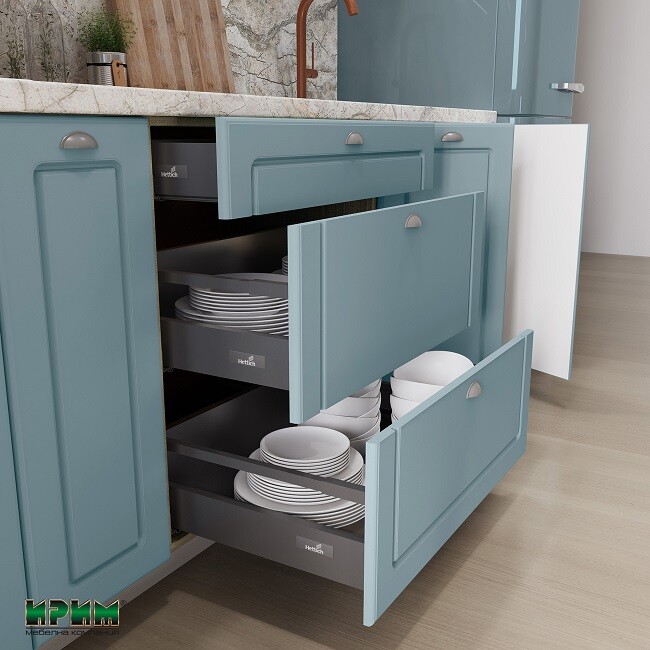 • Долен модул с три чекмеджета със система InnoTech Atira плавно пребиране МФ-Деним мат-06-55 - 80/55/87см.