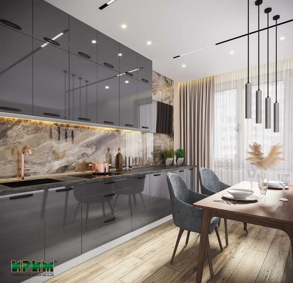 Кухня Сити 993 впечатлява с модерен и стилен дизайн, съчетаващ елегантен антрацитов гланц с издържлив каменен плот. Изработена от висококачествен МДФ и ПДЧ, с плавно затваряне на врати и чекмеджета, възможност за вграждане на мивка и кухненски уреди, тя предлага практичност и функционалност. Комплектът е идеален за всеки, който търси модерен и изискан интериор с удобство и дълготрайност.