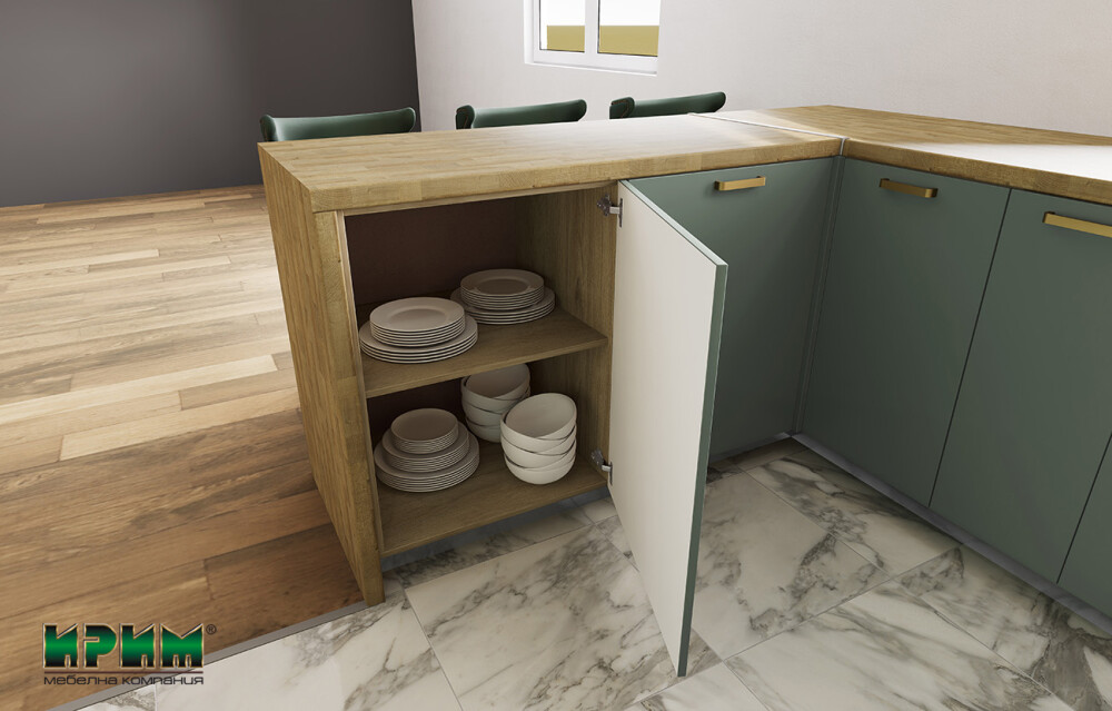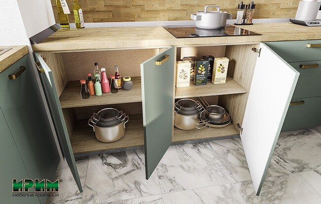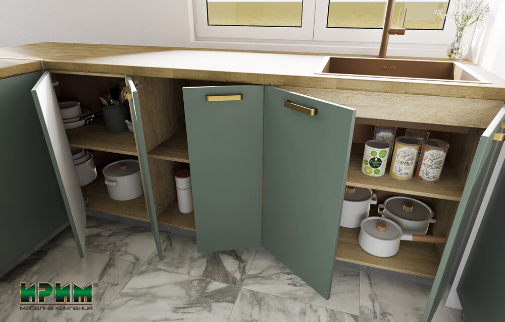 - Два долни модула с две врати и рафт, възможност за вграждане на мивка АРФ-Олив мат-11-23 - 80/55/87см.