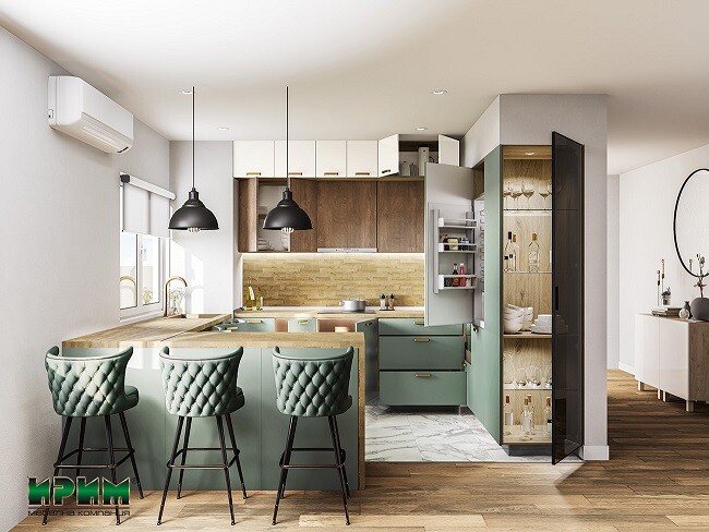 - Три модула с врата и рафт АРФ-Олив мат-11-60 - 60/55/87см