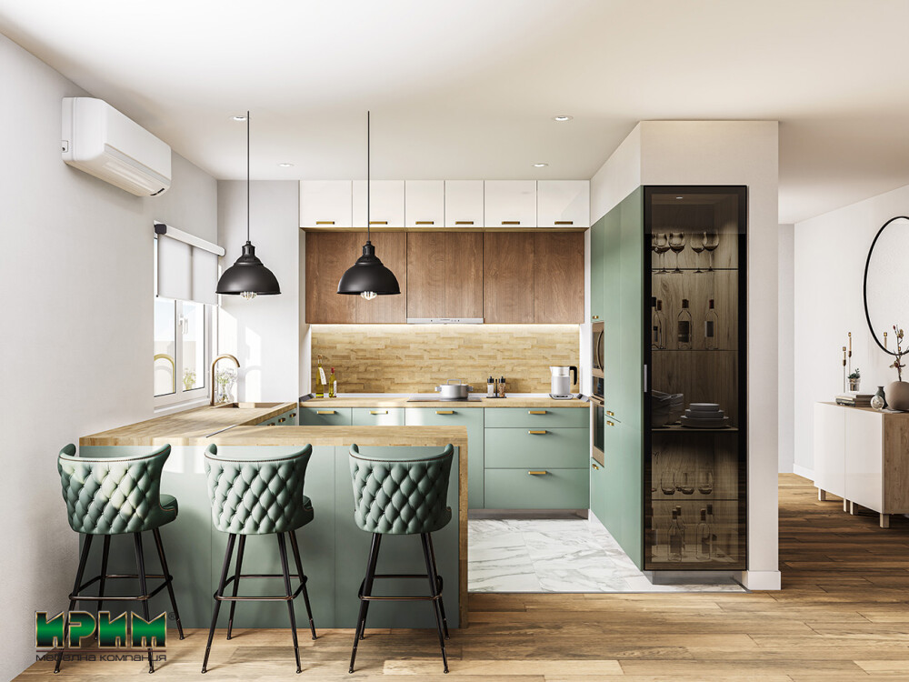 Кухня Сити 9140 съчетава изискан модерен дизайн и естествена топлина в перфектна комбинация от матов маслинен цвят, Крийм гланц и Дъб натурал. Изработена от висококачествен МДФ, с плавно затваряне, възможност за вграждане на мивка и уреди, и LED осветление, тя предлага елегантност, функционалност и дълготрайност. Перфектно решение за модерния дом, в който стилът и удобството вървят ръка за ръка.