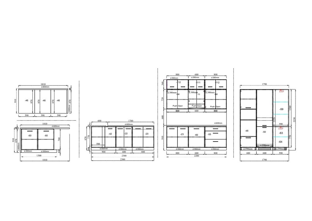(дълбочина на шкафовете под плот – 55 см)
