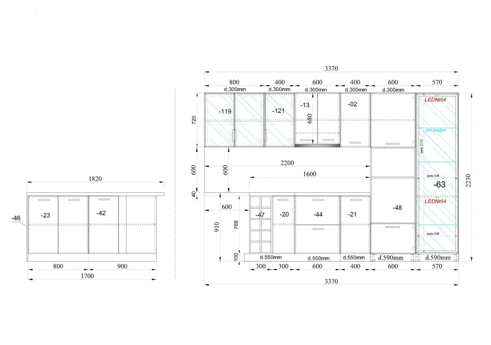 В цената не са включени : термогръб, водобран, тапи и ъгли, присъединителна лайсна, декоративни елементи, мивка, батерия и електроуреди.
