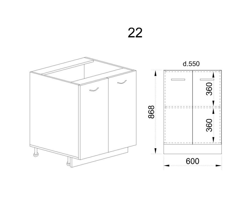 Долен модул с две врати и рафт, възможност за вграждане на мивка БФ-Капучино мат-11-22