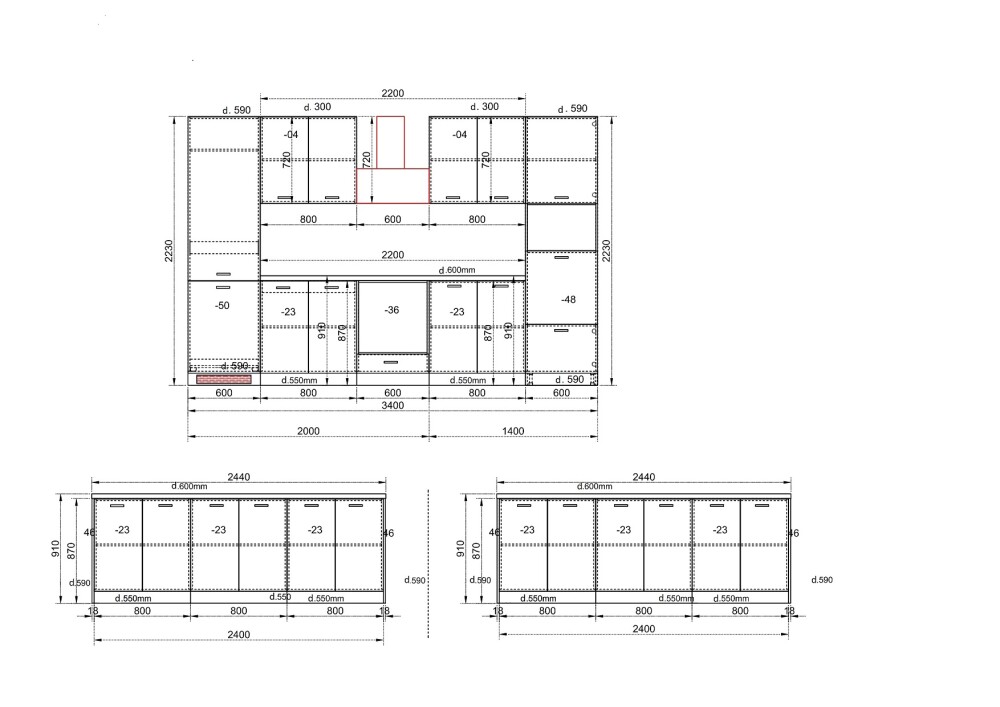 • Два шкафа с две врати и плот – 80 см (възможност за вграждане на мивка) - БС - 23