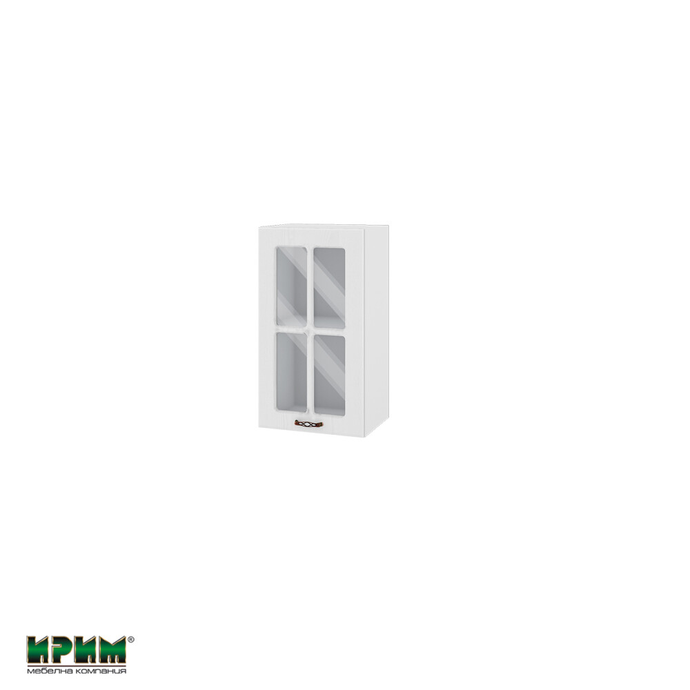 Горен модул с витринна врата и рафт БФ-Бяло фладер-04-102