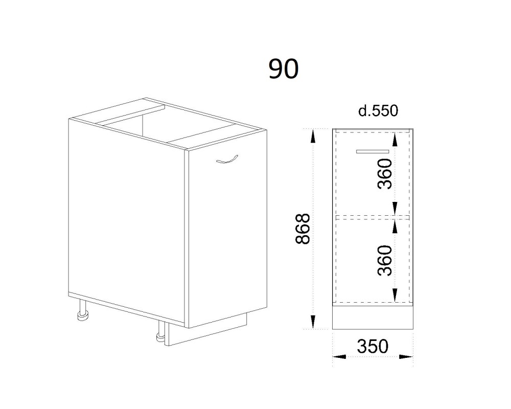 Долен модул с врата и рафт БФ-Бяло фладер-04-90 (ляв)