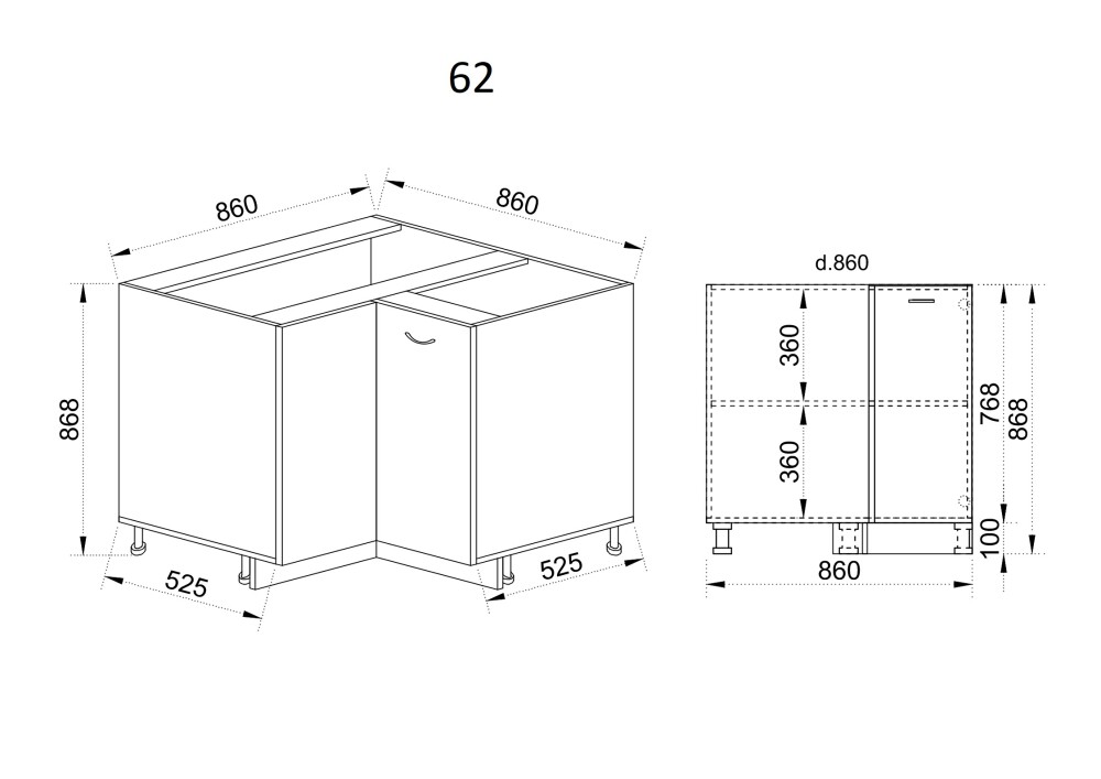 Долен модул ъглов с две врати и рафт БФ-Бяло фладер-04-62 (ляв)