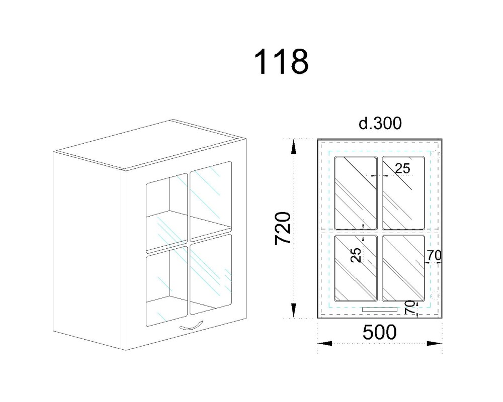 Горен модул с витринна врата и рафт БФ-Бяло мат-09-102