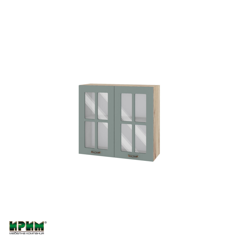 Горен модул с две витринни врати и рафт АРФ-Олив мат-11-104